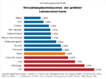 Werte zwischen unter 1,2 und 1,3 Prozent wurden errechnet für die Cosmos Lebensversicherungs-AG, die R+V Lebensversicherung AG und die Hannoversche Lebensversicherung AG.
